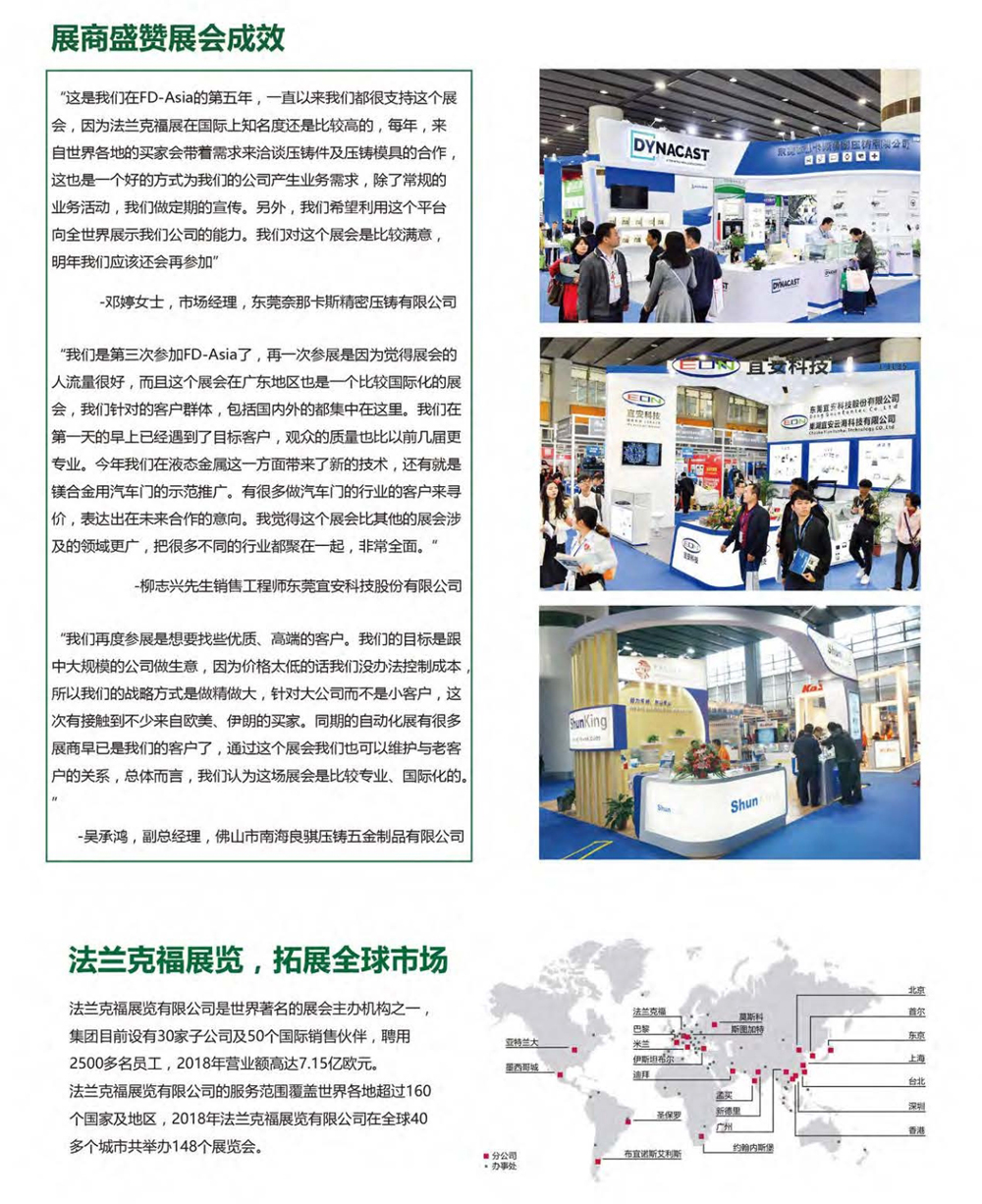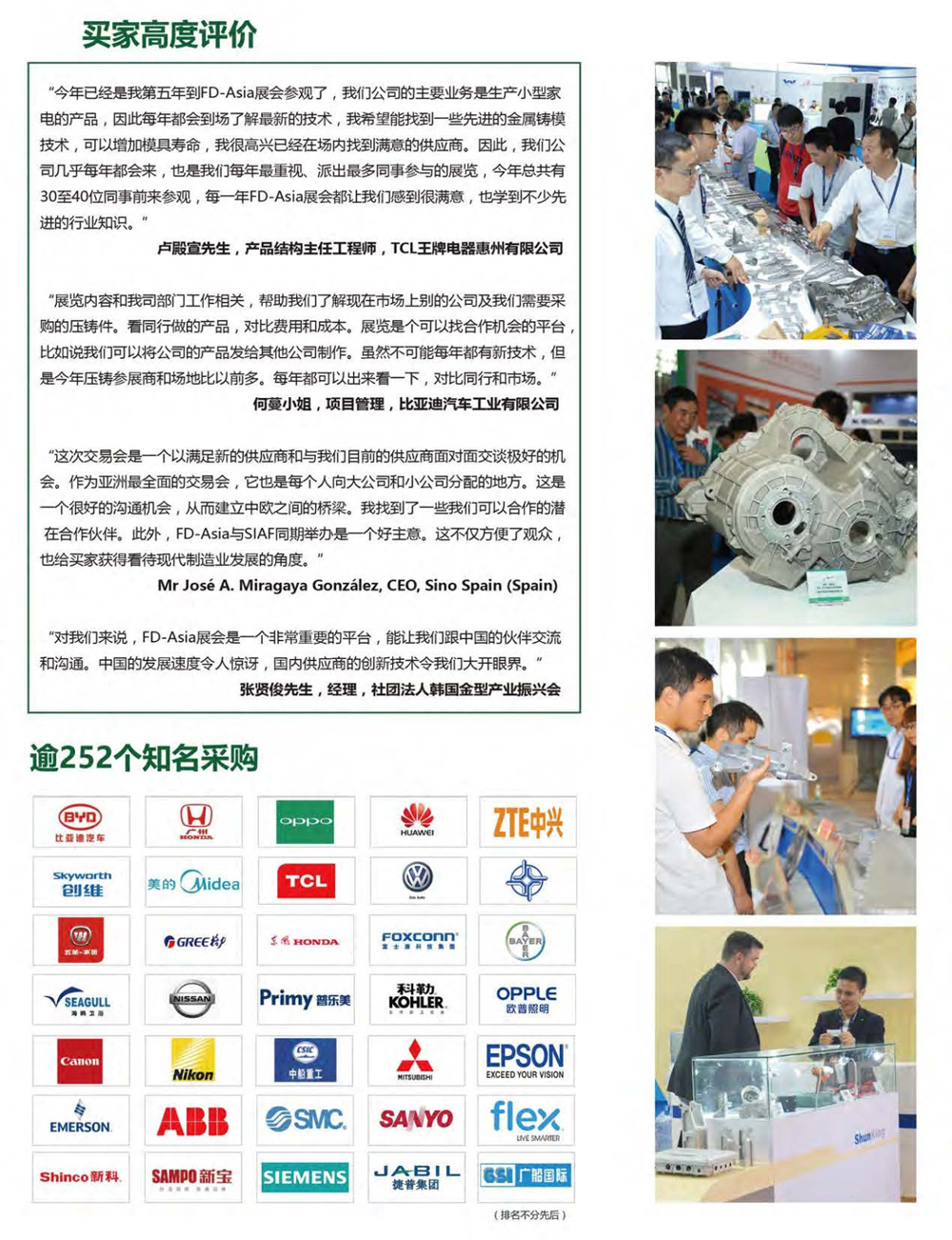 广州国际铸造压铸及锻压工业展览会(FD-Asia)自2011年举办以来,FD-Asia凭借华南地区产业集群的地理优势和全球网络资源,始终坚持以专业化、国际化、品牌化为办展原则,屡创佳绩,成功云集铸造、压铸及锻压行业的产品,成为业界有效的贸易开拓和推广平台。