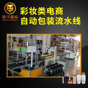 化妆品自动化包装整线,自动开箱封箱贴标机