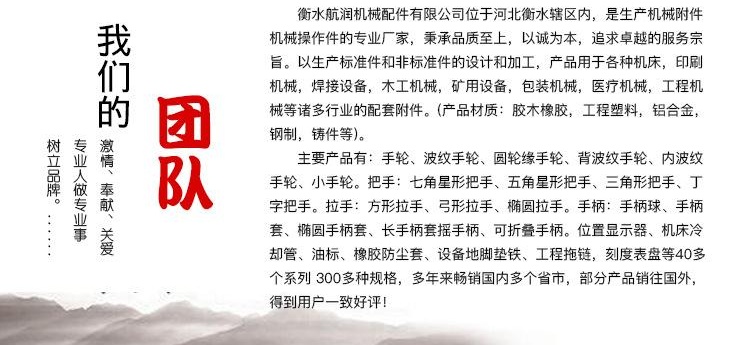手轮按样式分主要有小手轮,波纹手轮,小波纹手轮,背波纹手轮,圆轮缘手轮,内波纹手轮、双柄手轮,铸铁镀烙手轮,平面手轮,双幅条手轮、表盘手轮、磨床手轮、铣床手轮等等。
