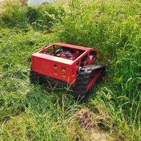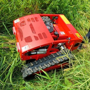 (4)发动机启动;a、松开发动机右侧刹车(同时也断开了熄火开关);b、左侧油门逆时针拧到底(这样同时打开发动机风门);c、用力拉动手拉盘拉绳,启动发动机;d、启动发动机后及时把油门调整到适当转速;e、操作割草
