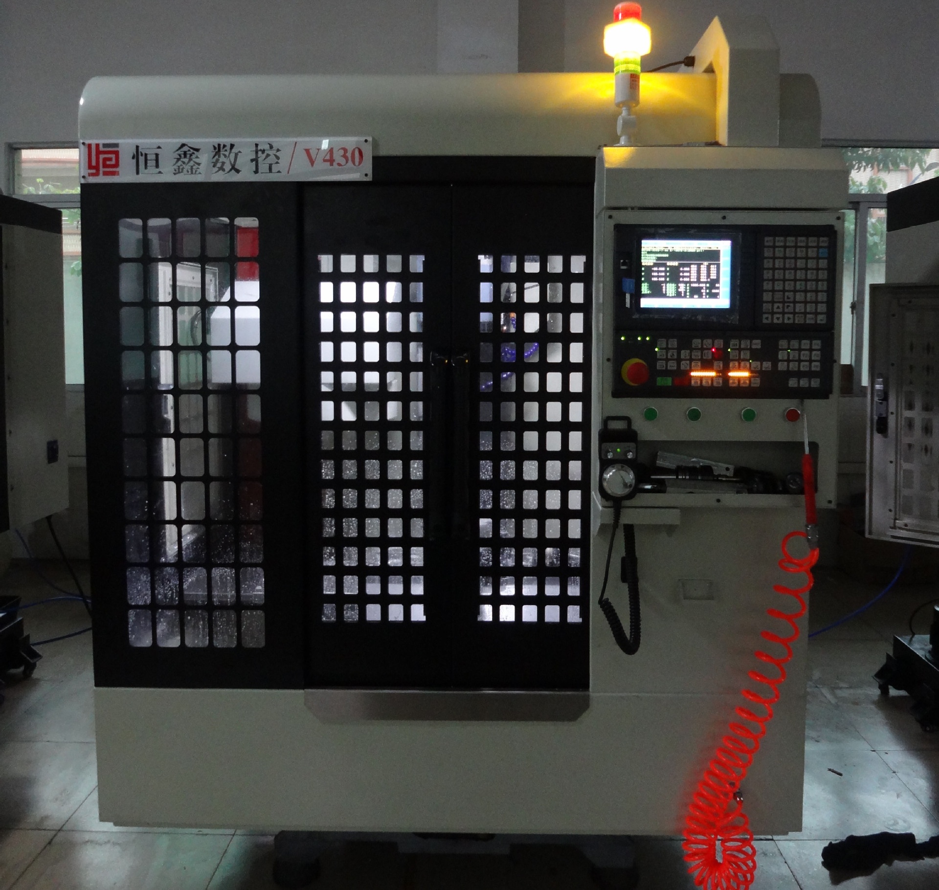 恒鑫数控V430小型数控机床,占地面积小,自动化程度高,用电量少,能够为客户节约厂房用地、减少人工数量、降低生产成本。设备广泛的应用于五金配件加工,能完成铝材、铜材、铁、不锈钢及复合材料的外形铣削、钻孔、攻牙等加工。