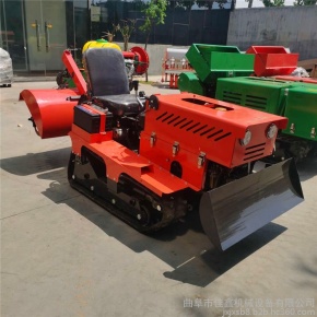 多功能 履带式开沟施肥机安装上不同的配件可以进行单独旋耕、回填、单独开沟、施肥、也可混合搭配使用。产品结实耐用,性能优越,操作方便.耐用:机身加厚,密,履带式行走,可进行原地转向。刀具都是加厚75号猛钢锻造,非常耐磨耐用,工作效率高.