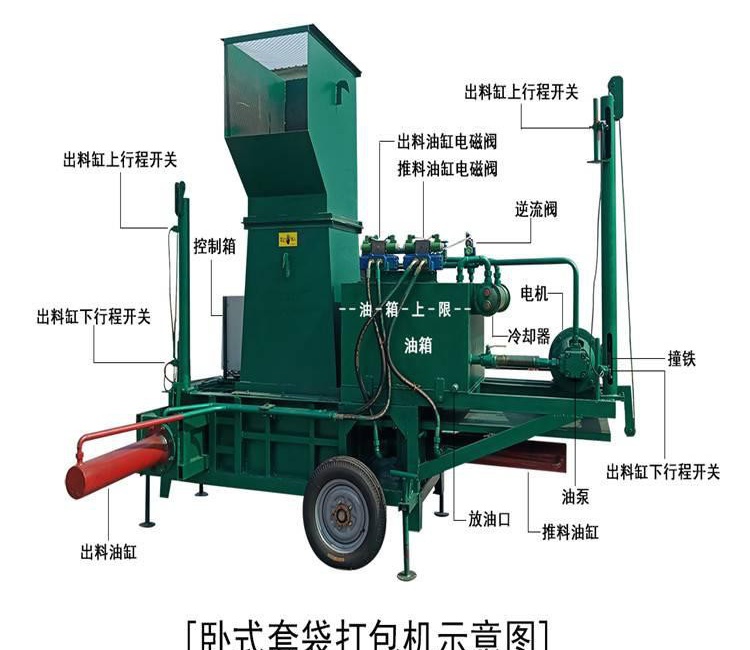 液压打包机具有效率高、结构紧凑、操作简便、传动稳定可靠、机动灵活等优点,该系列打包机主要由液压系统、储料系统、压缩机构、装袋机构、行走机构(可加)、电气系统组成,可定做车载式、可定做柴油机动力。生产效率较立式打包机提高5-10倍,每吨用电小于3度。大型玉米秸秆打包机是将粉碎的玉米秸秆压缩、打捆、包装的机器。该机具有结构紧凑、操作简便、传动稳定可靠、机动灵活等优点,该系列饲草压捆机主要由柴油机、液压系统、储料系统、压缩机构、装袋机构、行走机构、电气系统组成。广泛用于畜牧业饲草的青储、干储。可节省储存空间,延长青绿秸秆的饲喂时间,装包密封后会自然发酵,产生益生菌、有益菌、乳酸菌、蛋白,从而自然发酵,牛羊等家畜进料后容易吸收,成长比率会提高,由此大大降低了饲料运输、存放成本,减轻工人的劳动强度。给畜牧业带来了实实在在地经济效益。是中大型养殖厂青贮取料必备之产品之一。主缸横推压实-侧缸纵向压实-推包压头将包块推入包装袋中。各部件回位继续下一个工作循环。整个过程一气呵成,同时也能切换成半自动、手动。整个打包时间仅用1分钟。相比之下立式打包机的单位打包成本较低,但是生产效率较低;卧式秸秆打包机投资较大、但生产效率提高10倍、压力大包块重量大、可以弥补设备投资的缺点。
