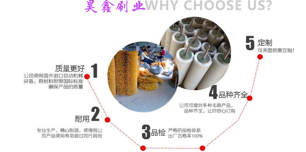 欢迎您的光临。团队热线:18712192363,0556-8531868.【鑫】理念 * 【浩】品质。我公司营销队伍不断壮大,以及现代电商的积极把握,公司投入二期建设当中。有我们今天的成绩,离不开各界朋友的大力支持与信赖。促使从小作坊到大企业的华丽蜕变。随着现代工业的不断发展,从五、六十年代的小作坊手工式产业,经过几十年国人的不服输拼劲。企业发展壮大,设备一次次更新,实现自动化流水线作业。在各行业机械配套中,毛刷成为不可或缺的工具,在一些清洗、抛光、除尘、减震、传动的方面,起到了积极的作用。