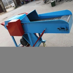 大型带输送带的铡草机,加工牛、羊、鹿、马等牲畜饲料的铡草机,大型铡草机可用拖拉机带动,底部有橡胶轮可方便移动。