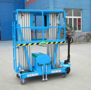 双柱铝合金升降机是全新设计的新一代产品,整体采用高强度铝型材精制而成由于型材强度高,使升降台的偏转与摆动极小。采用双桅柱式结构,载重量大,平台面积大,稳定性极好,运转灵活,推行方便。它轻盈的外观,能在极小的空间内发挥起较大的举升能力。该升降机广泛用于厂房、宾馆、大厦、商场、车站、体育场等。可用作电力线路、照明电器、高架管道等安装维护,高空清洁等单人工作的高空作业。