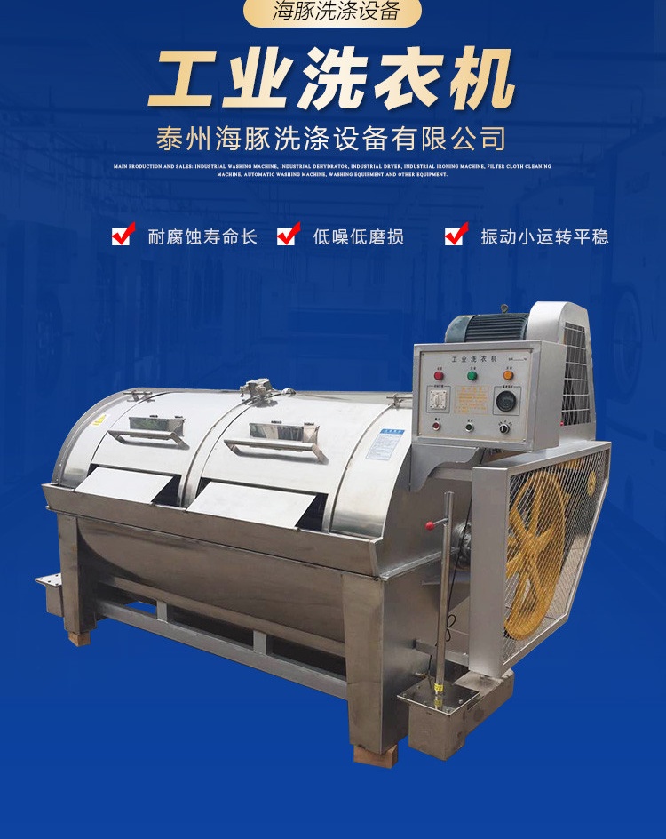 工业洗衣机具有结构紧凑,操作维修方便、设计合理,运转平稳,使用寿命长等特点。其主要部件、内胆与外壳均用304不锈钢精致而成。主要适用于服装水洗、面料洗涤,也用于棉、毛、化纤等织物的洗涤和漂染。是服装行业、宾馆、休闲、滤布清洗等工矿企业理想的洗涤设备。