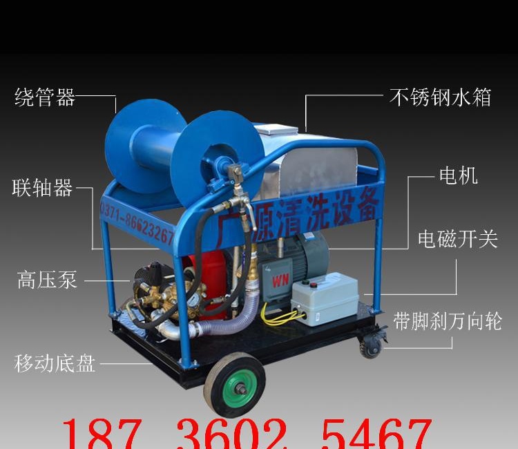 郑州广源本款管道清洗机清洗机的主要清洗对象:各类规格的上下水管道、工业用水管道、工矿企业及居民区排污管道、排渣管、雨水管、煤气管道、烟道、输油管道及两相流输送管道的堵塞物。各种热交换器、冷凝器、空气预热器、制冷机、复水器。除尘器、蒸发罐、反应釜、加热装置等结构物。还可以用来清洗各类锅炉、罐体、容器的水垢、盐垢、碱垢及物料,空调设备的水垢等。另外这种管道清洗机还可以用于大型楼房、建筑物及设备内外表面的污垢附着物清洗。