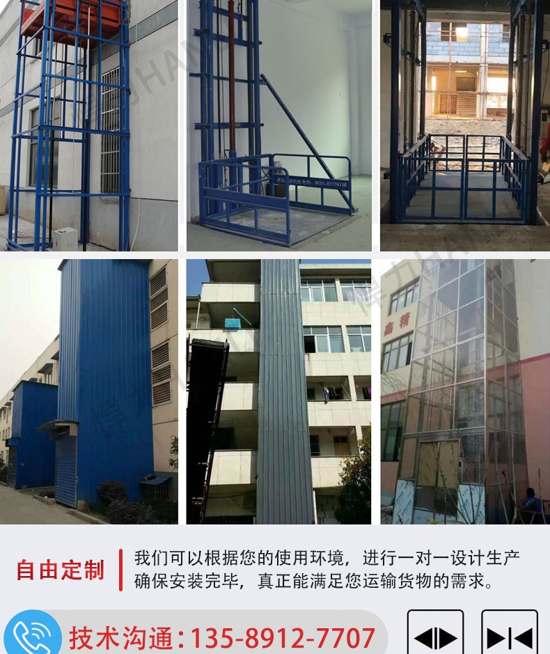 济南汇泽机械制造有限公司【全国24小时热线:135-8912-7707】 【汇泽升降机**SJD系列的液压升降货梯、载货升降货梯、家用货梯、简易升降货梯、导轨式升降货梯、固定式升降货梯、仓库升降货梯、厂房货梯、小型升降货梯、导轨式升降机 汇泽升降机厂家 可根据客户配置要求设计生产(油漆、颜色、台面、高度、特殊要求等) 全国范围上门实地测量实地安装,所有产品均有商业保险承保。 汇泽机械 悍力注册品牌,实体厂家欢迎莅临厂部考察!