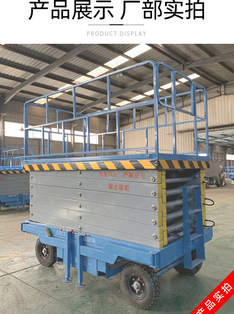 移动式升降机升降平台产品介绍:常规移动式升降平台分为:4米移动式升降平台,6米移动式升降平台,7米移动式升降平台,8米移动式升降平台,9米移动式升降平台,10米移动式升降平台,12米移动式升降平台,14米移动式升降平台,16米移动式升降平台,18米移动式升降平台,其它规格可以根据情况进行定制。移动式升降平台系列为人工移动式和电动助力式,平台升降动力为二相或三相电源;控制,有手动控制和电动控制,另备有手压泵,供停电时使用,该系列平台移动灵活、升降平稳、操作方便等特点,适用于高空作业现场频繁变更的场所,如:建筑工地、工厂、机关、商店、车间、宾馆、机场、码头、装饰、博物馆、会议中心、加油站、体育场馆、高架管道等以及各类设备维护、现场电力设施维护和钢架结构维护等 。